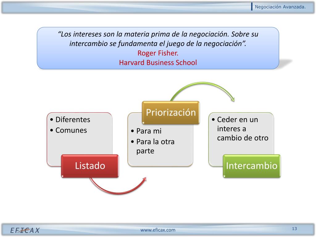 “Los intereses son la materia prima de la negociación. Sobre su intercambio se fundamenta el juego de la negociación”. Roger Fisher. Harvard Business School