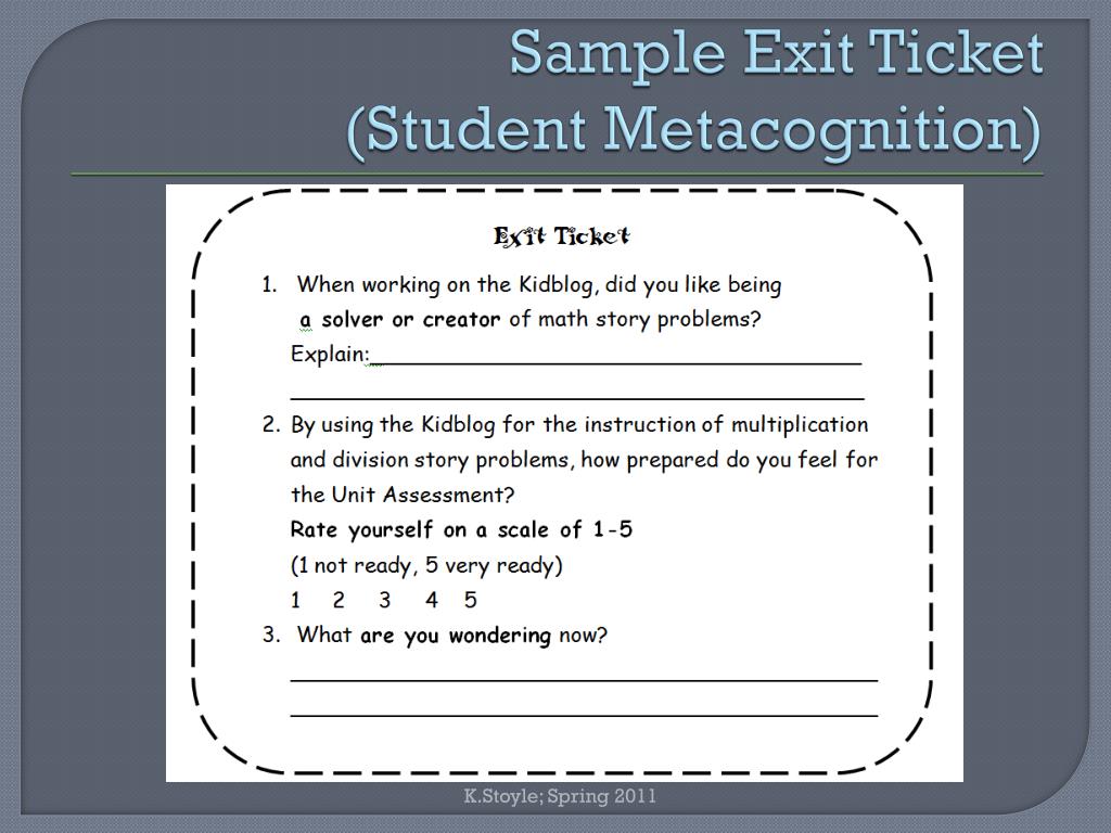 Sample Exit Ticket (Student Metacognition) K.Stoyle; Spring 2011