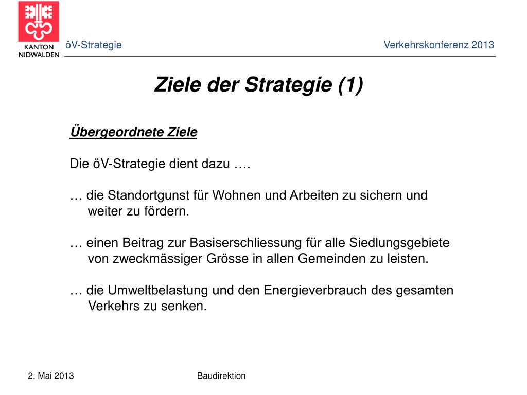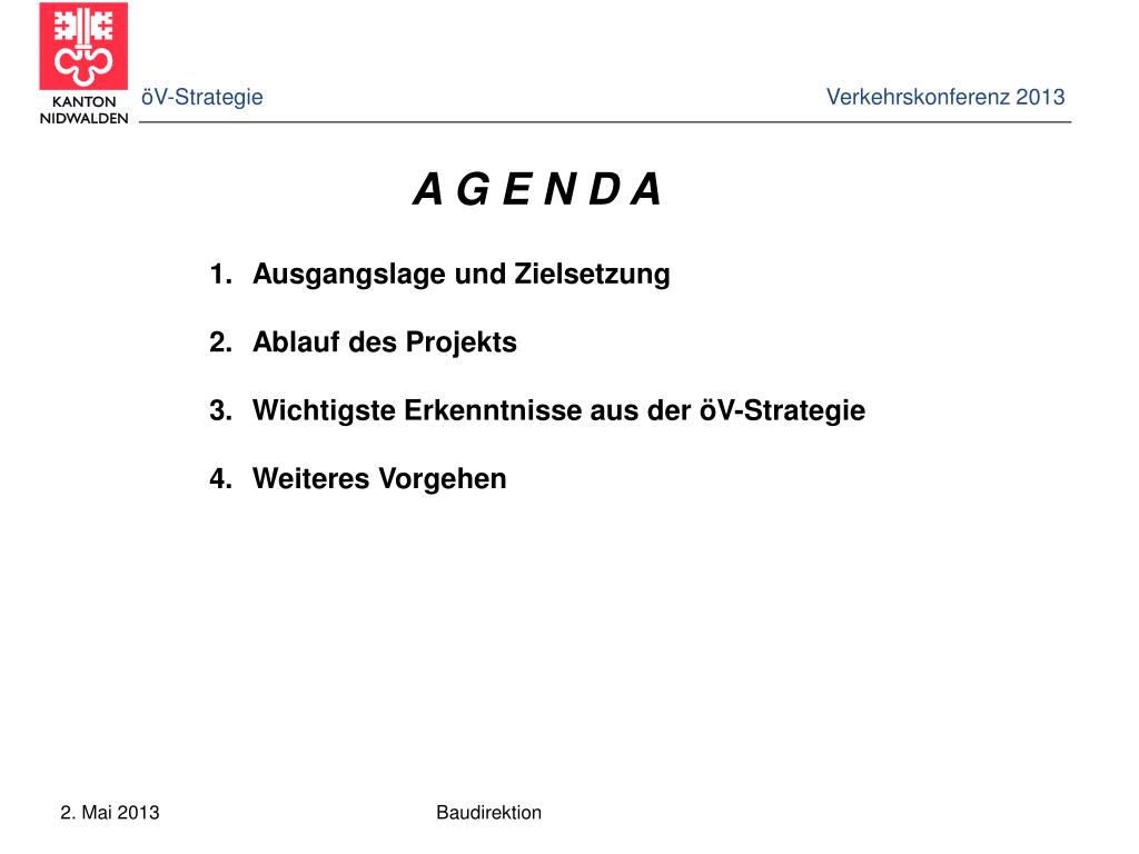 öV-Strategie Verkehrskonferenz 2013 ÖV-Strategie Nidwalden Stand der Arbeiten 2. Mai 2013 Baudirektion