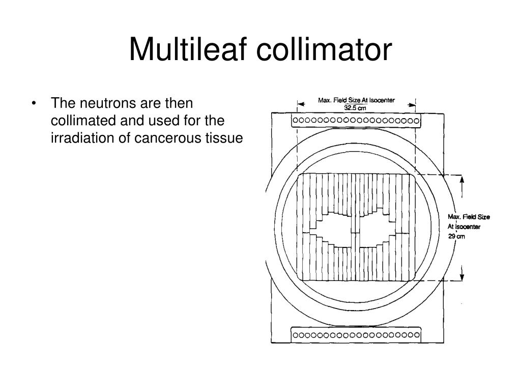 Multileaf collimator • The neutrons are then collimated and used for the irradiation of cancerous tissue
