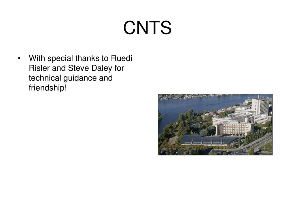 Clinical Neutron Therapy Center. Donna Kubik Spring, 2005. CNTS. With special thanks to Ruedi Risler and Steve Daley for technical guidance and friendship!. CNTS.