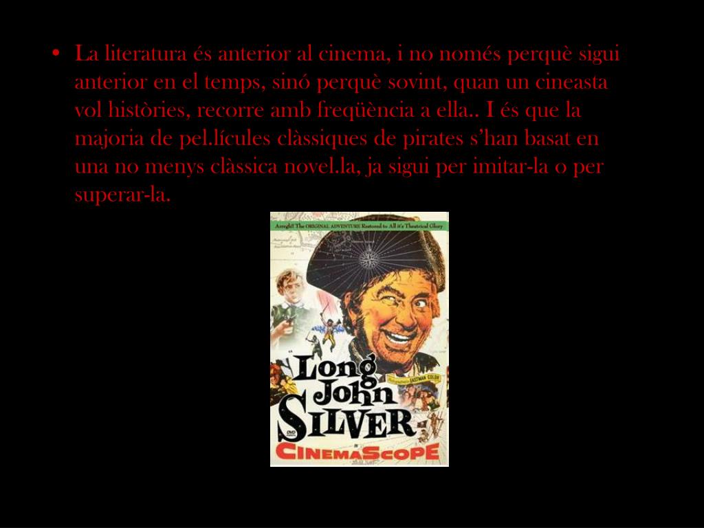 La literatura és anterior al cinema, i no només perquè sigui anterior en el temps, sinó perquè sovint, quan un cineasta vol històries, recorre amb freqüència a ella.. I és que la majoria de pel.lícules clàssiques de pirates s’han basat en una no menys clàssica novel.la, ja sigui per imitar-la o per superar-la.