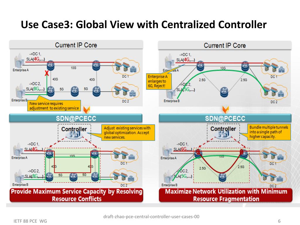 Introduction (cont) • Extending the existing PCE components from the current network to function as the central controller (PCECC) of the SDN network is one choice: • Satisfy the new service oriented requirements from users; • Provides all the existing MPLS functionalities including the LDP LSP, RSVP-TE LSP, mLDP/RSVP-TE P2MP LSP; • Without the deploying the MPLS protocols such as RSVP-TE and LDP. • Without introducing new protocols into the network • Without the data plane changes. • Achieve the goal of having a centralized controller by leveraging the existing PCE tool sets such as stateful PCE, H-PCE, GCO and P2MP PCE etc.