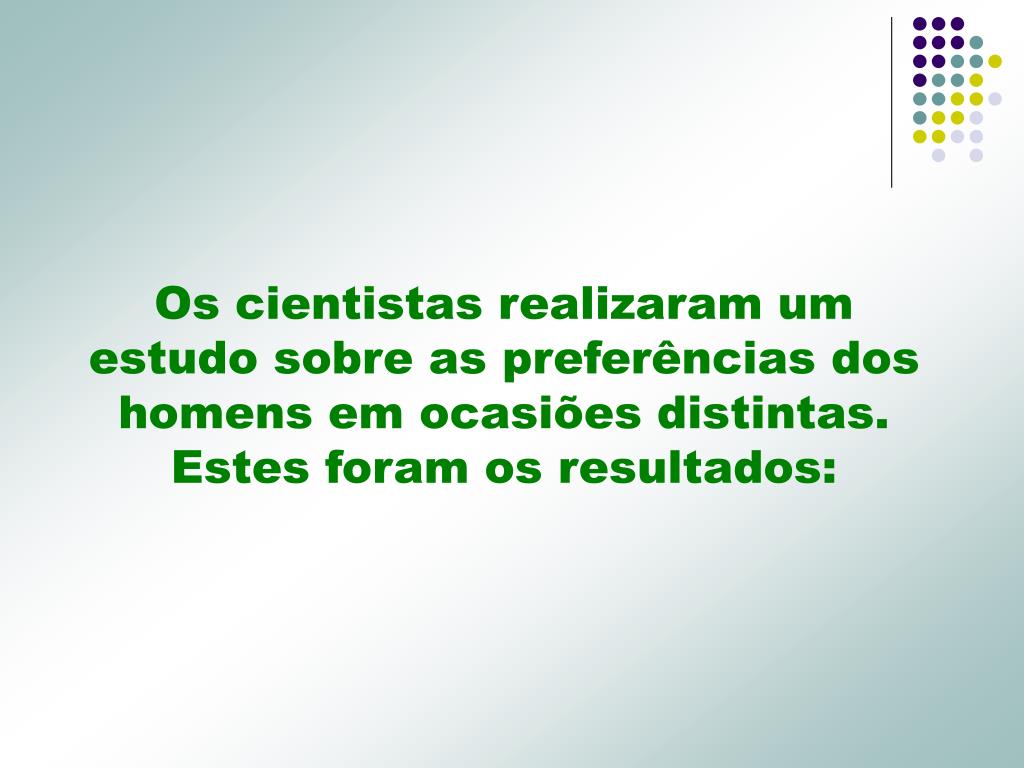 Os cientistas realizaram um estudo sobre as preferências dos homens em ocasiões distintas. Estes foram os resultados: