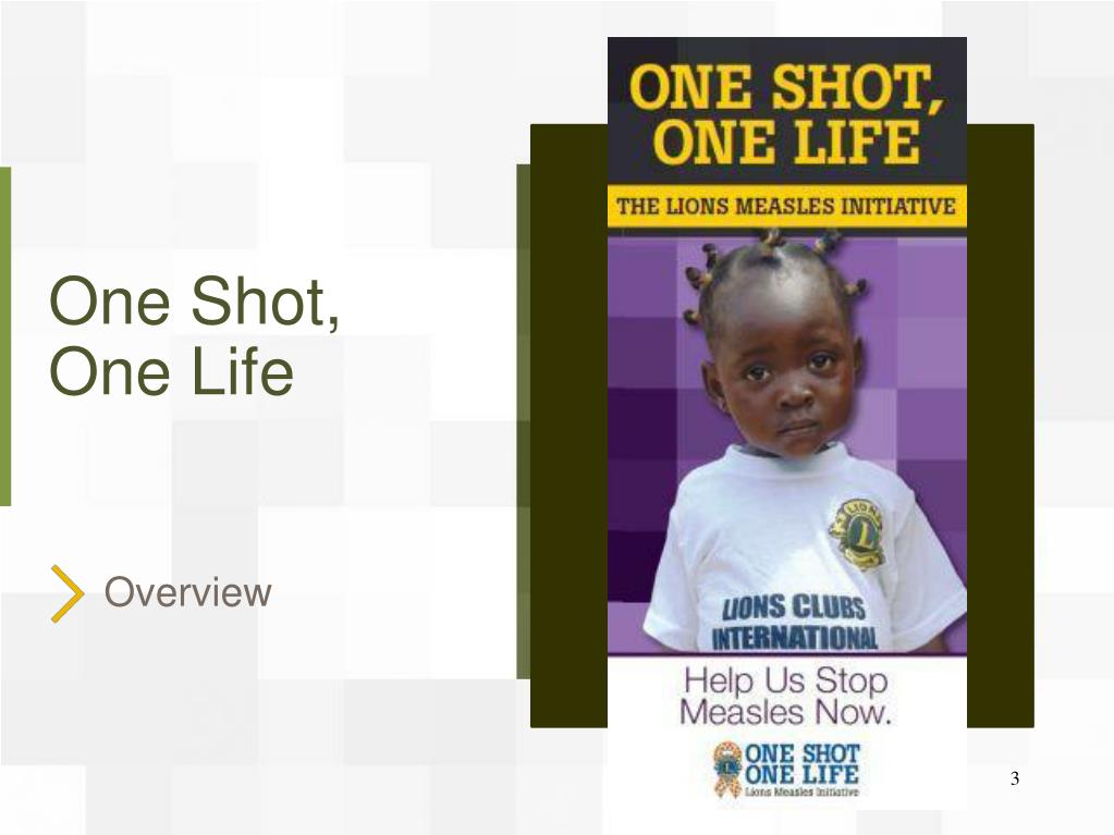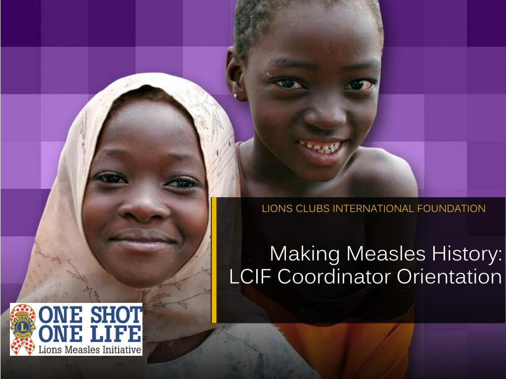 LIONS CLUBS INTERNATIONAL FOUNDATION. Making Measles History: LCIF Coordinator Orientation. One Shot, One Life. Overview. Call to Action!. Measles takes the life of 335 children every day – more than 122,000 a year. And it’s completely preventable .