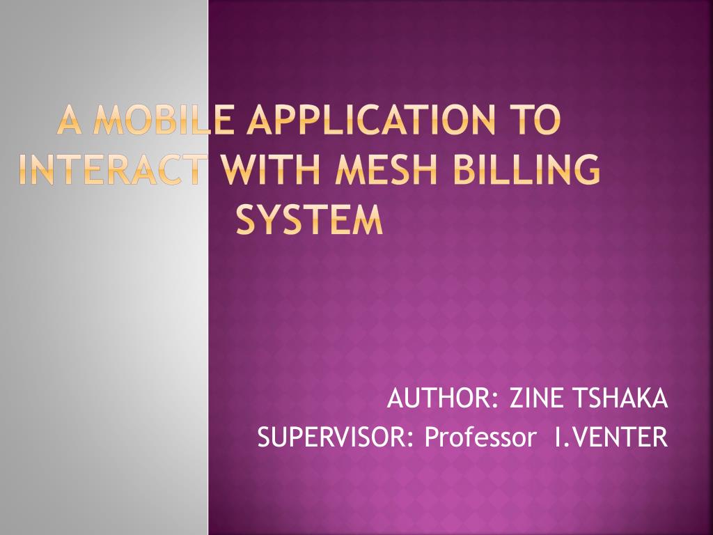 A MOBILE APPLICATION TO INTERACT WITH MESH BILLING SYSTEM AUTHOR: ZINE TSHAKA SUPERVISOR: Professor I.VENTER