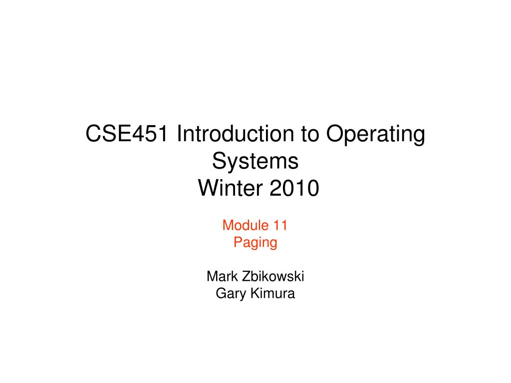 CSE451 Introduction to Operating Systems Winter 2010 Module 11 Paging Mark Zbikowski Gary Kimura