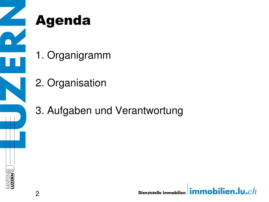 Agenda 1. Organigramm 2. Organisation 3. Aufgaben und Verantwortung