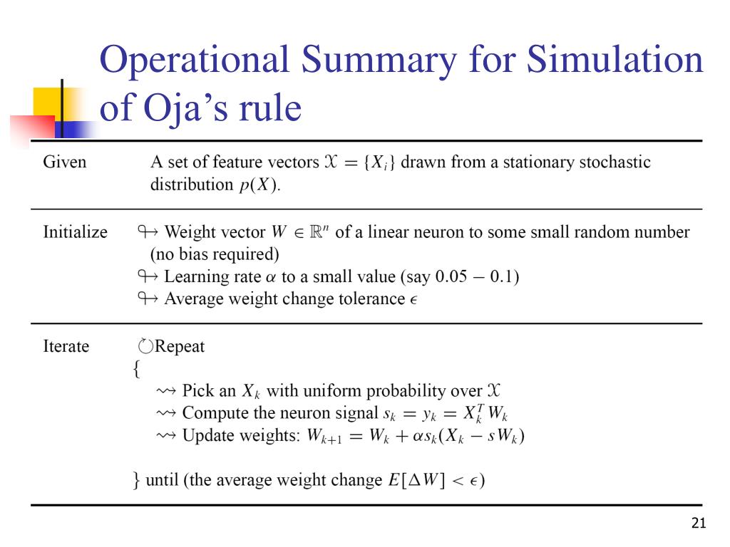 All Eigensolutions are not Stable • The ith solution is the eigenvector ηiof Rwith corresponding eigenvalue • Define θias the angle between W and ηi, and analyze (as before) the average value of rate of change of cos θi, conditional on W