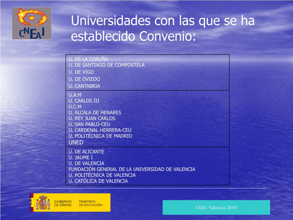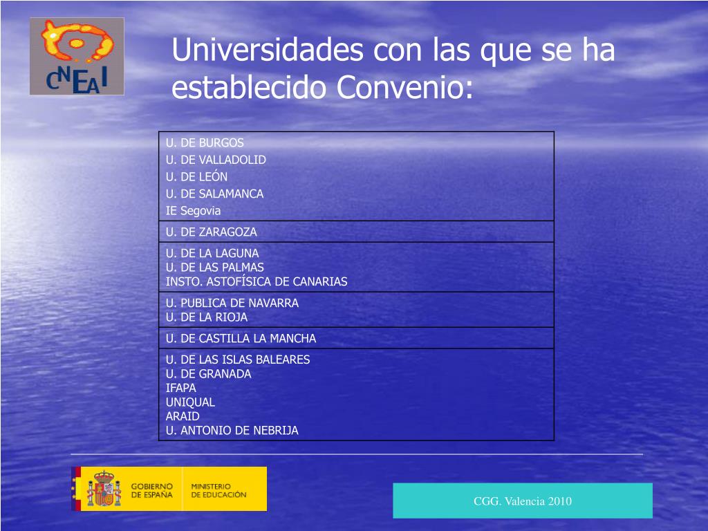 Universidades con las que se ha establecido Convenio: CGG. Valencia 2010