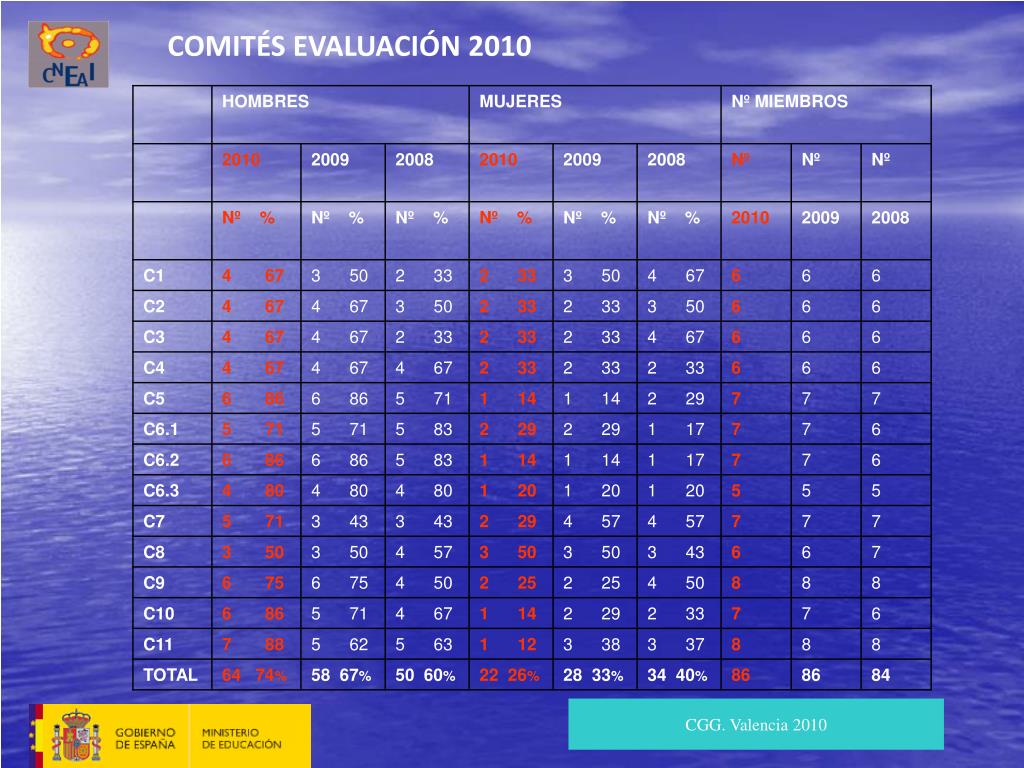 COMITÉS EVALUACIÓN 2010 CGG. Valencia 2010