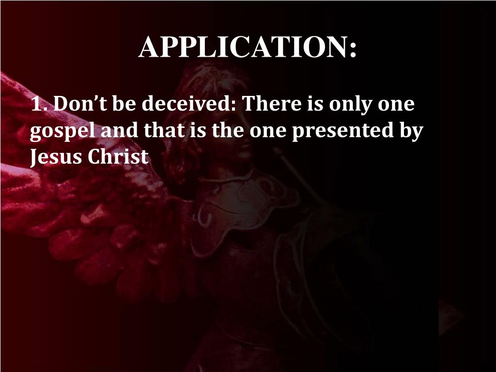 APPLICATION: 1. Don’t be deceived: There is only one gospel and that is the one presented by Jesus Christ