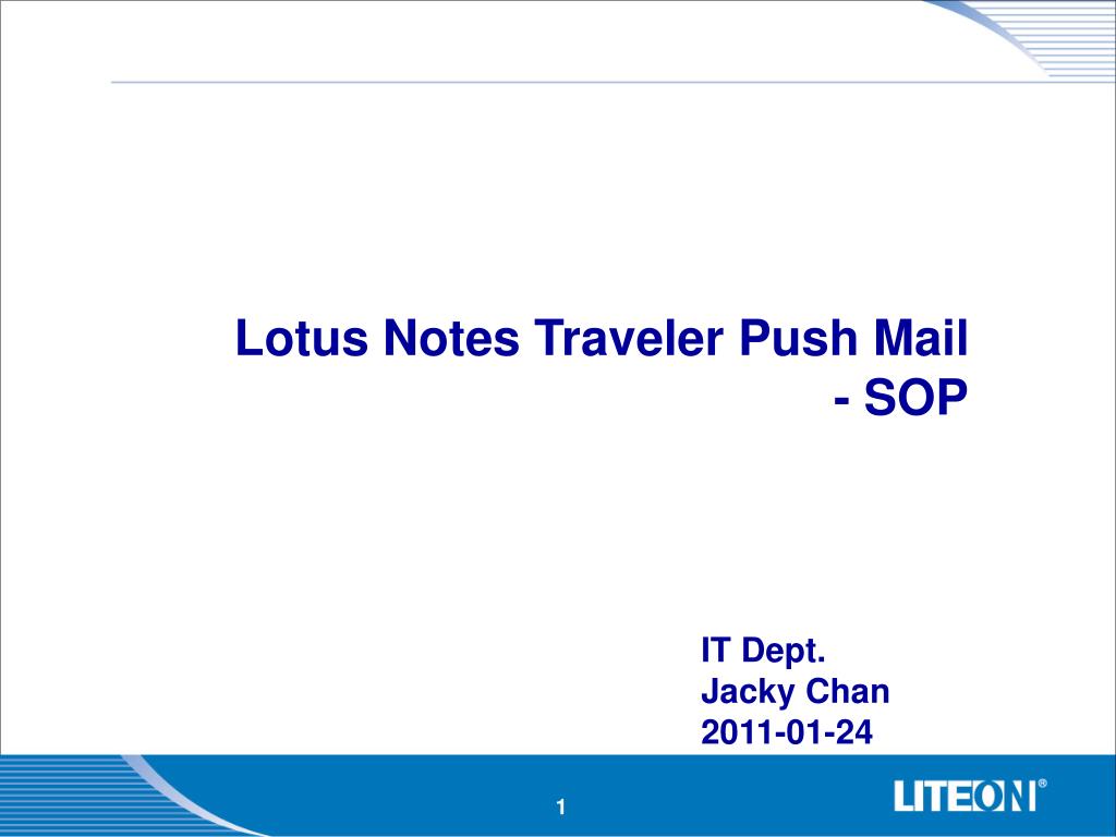 Lotus Notes Traveler Push Mail - SOP IT Dept. Jacky Chan 2011-01-24