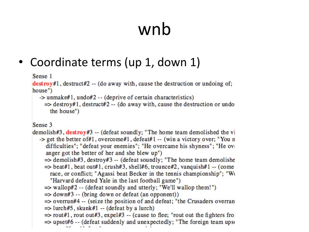 wnb • Derivationally related (different part-of-speech):
