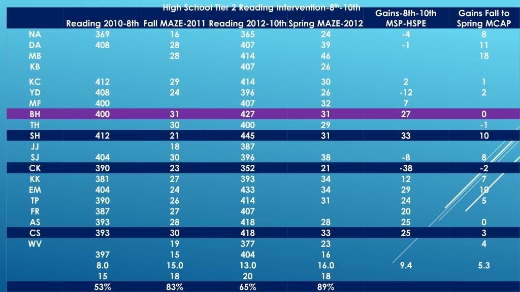10th Grade-MAZE Special Education (Language! & Reading Success) 2012-2013