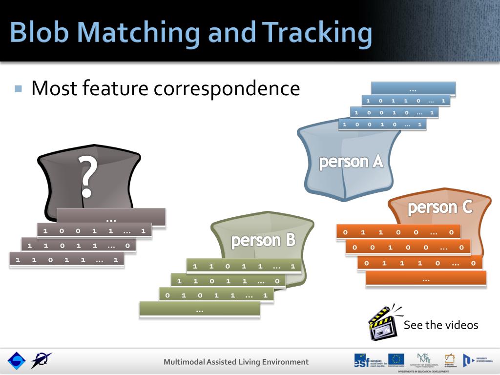 Blob Matching and Tracking ? person A person C person B See the videos Most feature correspondence Multimodal Assisted Living Environment