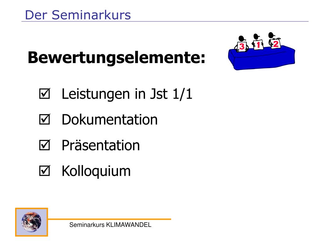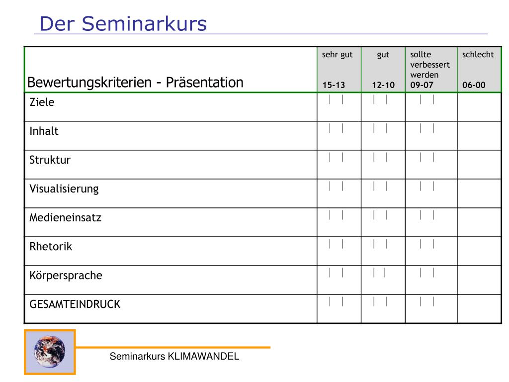 Der Seminarkurs Bewertungskriterien - Präsentation Seminarkurs KLIMAWANDEL