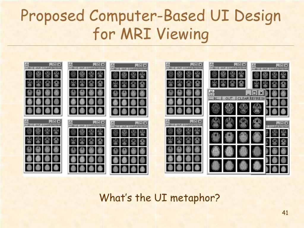 Proposed Computer-Based UI Design for MRI Viewing What’s the UI metaphor?