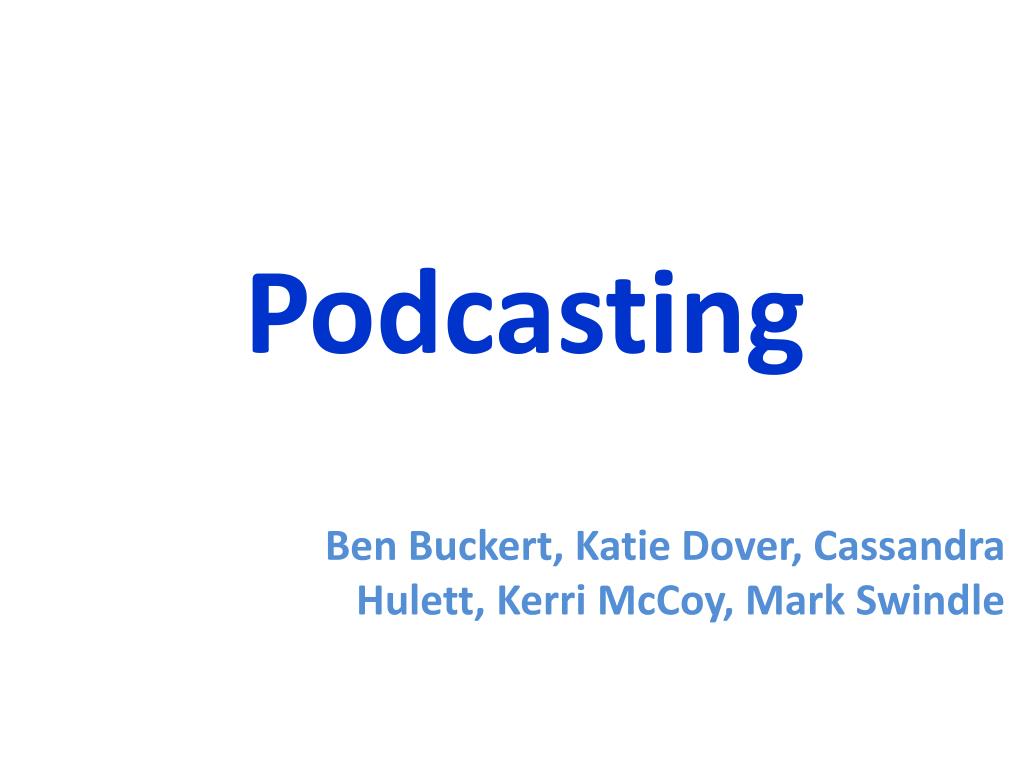 Podcasting. Ben Buckert , Katie Dover, Cassandra Hulett , Kerri McCoy, Mark Swindle. Podcasting. Remember the good old days of TV and radio? Everyone would gather around to be entertained. Shows were broadcast at specific times and if you weren't there on time, you missed it <boo>. .