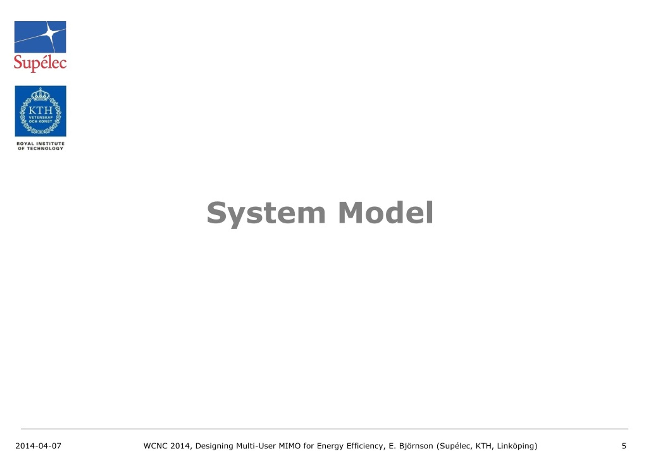 System Model WCNC 2014, Designing Multi-User MIMO for Energy Efficiency, E. Björnson (Supélec, KTH, Linköping)