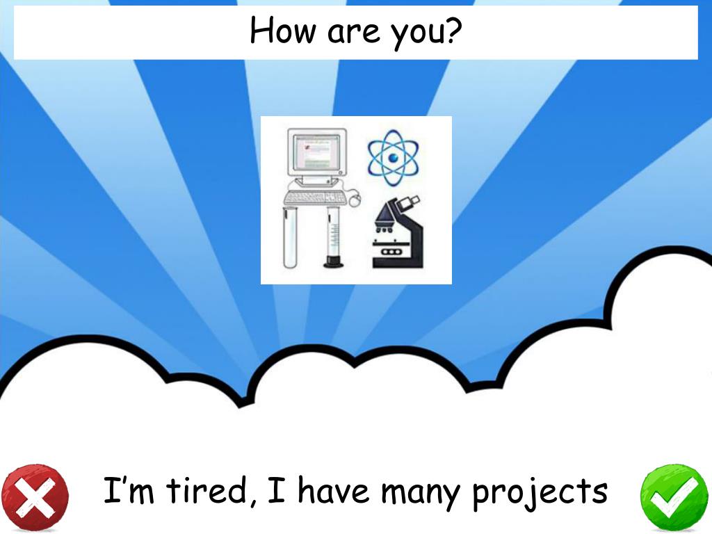 Fine, thanks. How about you? I’m tired, I have many classes.