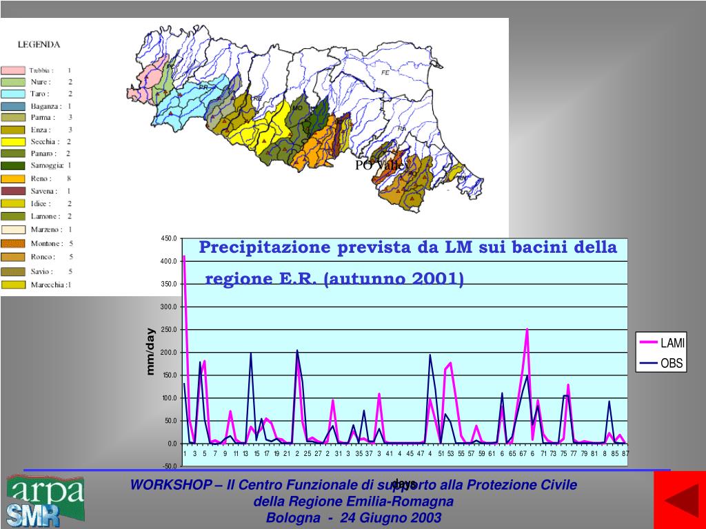 PO Valley Precipitazione prevista da LM sui bacini della regione E.R. (autunno 2001)