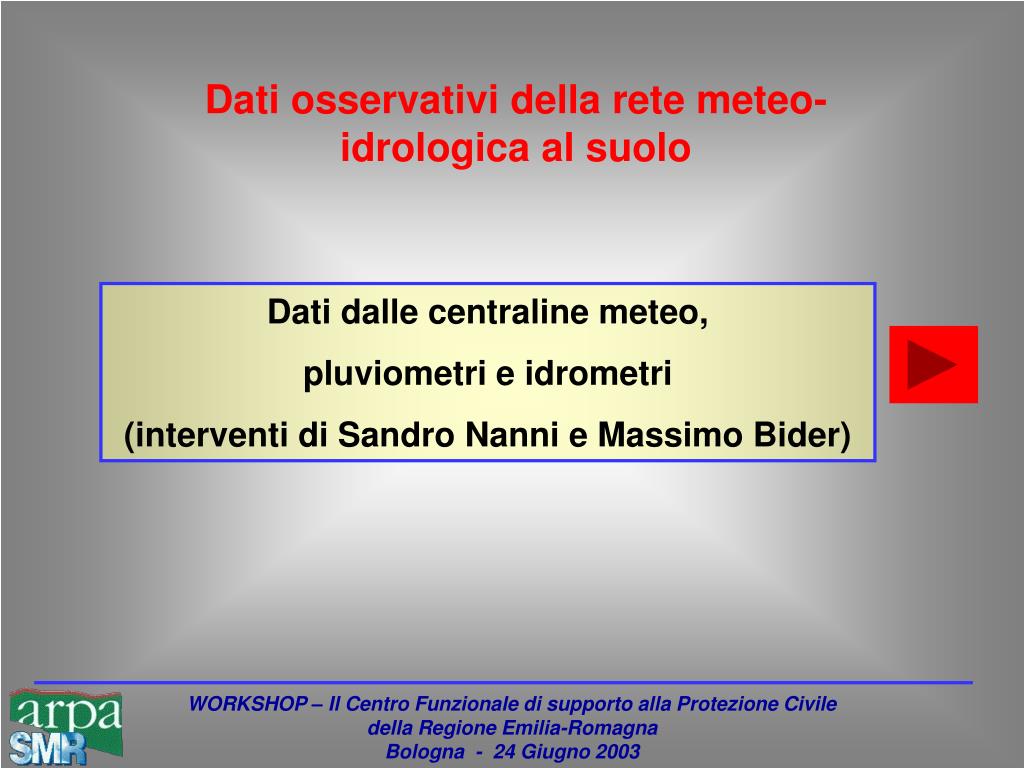 Dati osservativi della rete meteo-idrologica al suolo Dati dalle centraline meteo, pluviometri e idrometri (interventi di Sandro Nanni e Massimo Bider)