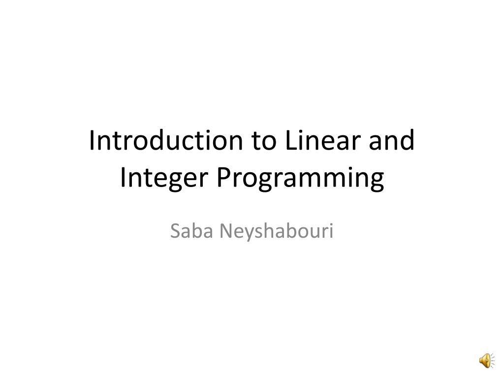 Introduction to Linear and Integer Programming Saba Neyshabouri
