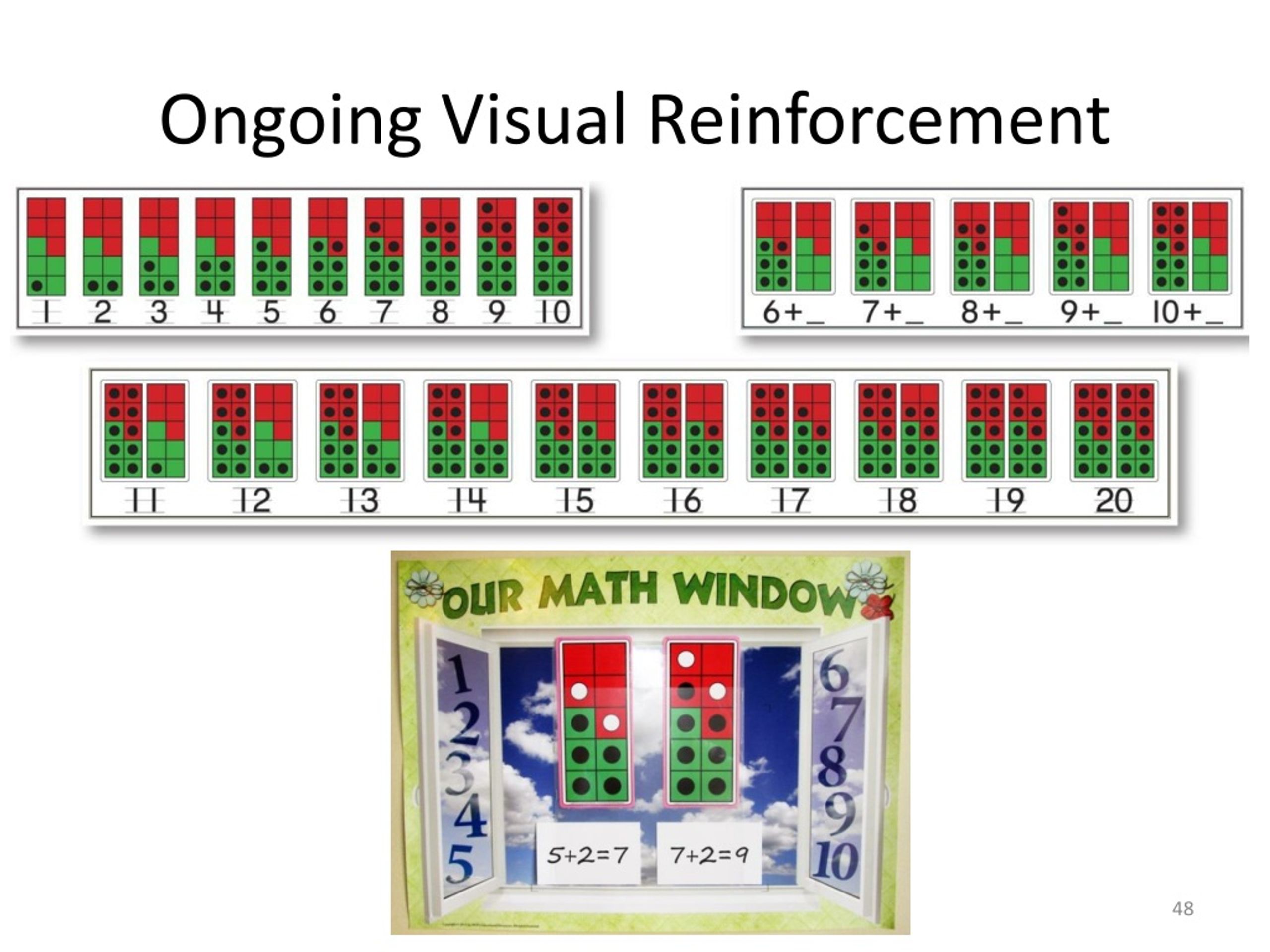 The Dot Cards Predictable images of numbers and operations, which are easy to visualize confidently,are used to overcome the abstract challenge.