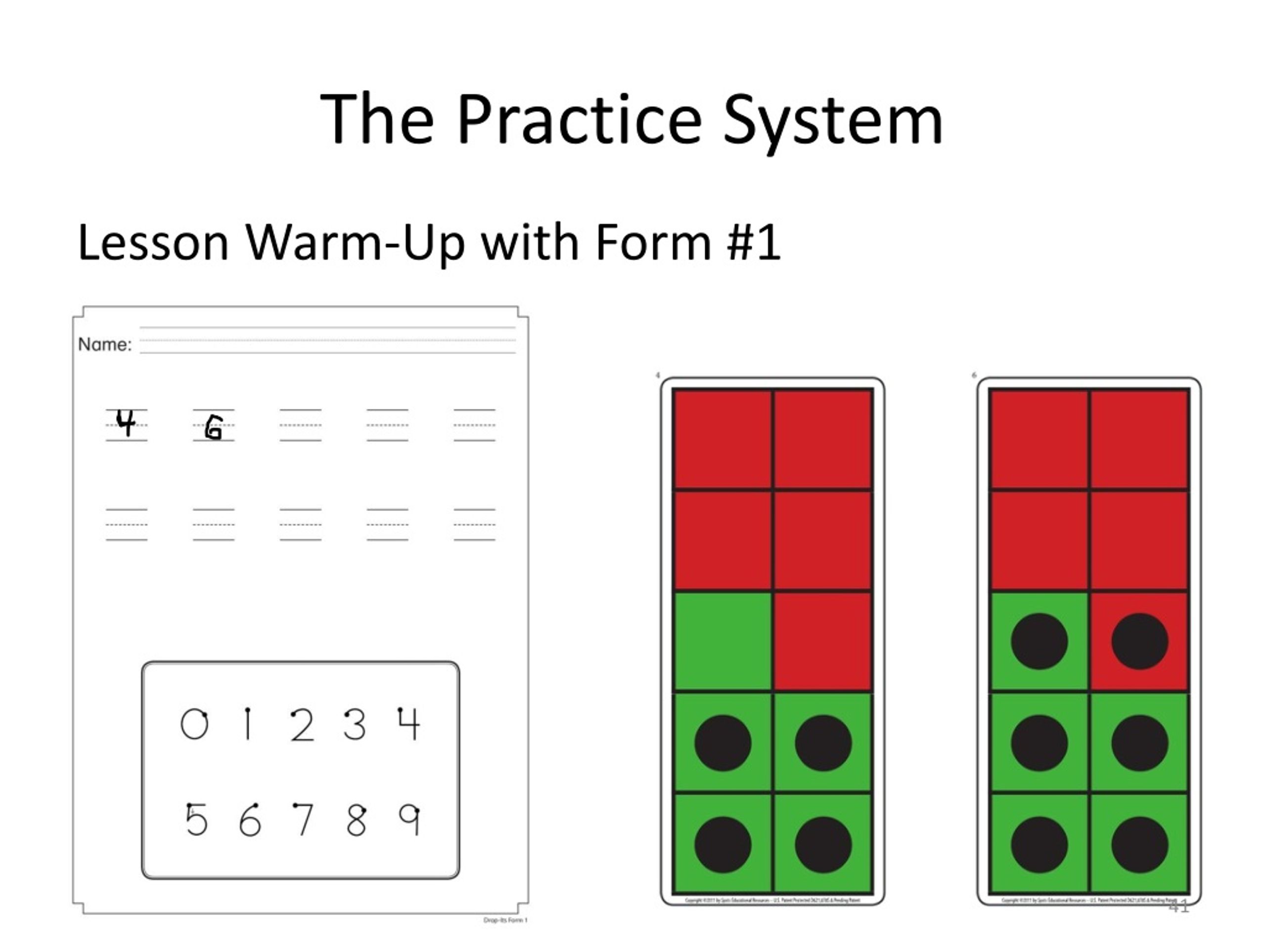 The Practice System, cont’d. Lesson Warm-Up with Form #3 4 + 2 5 + 3