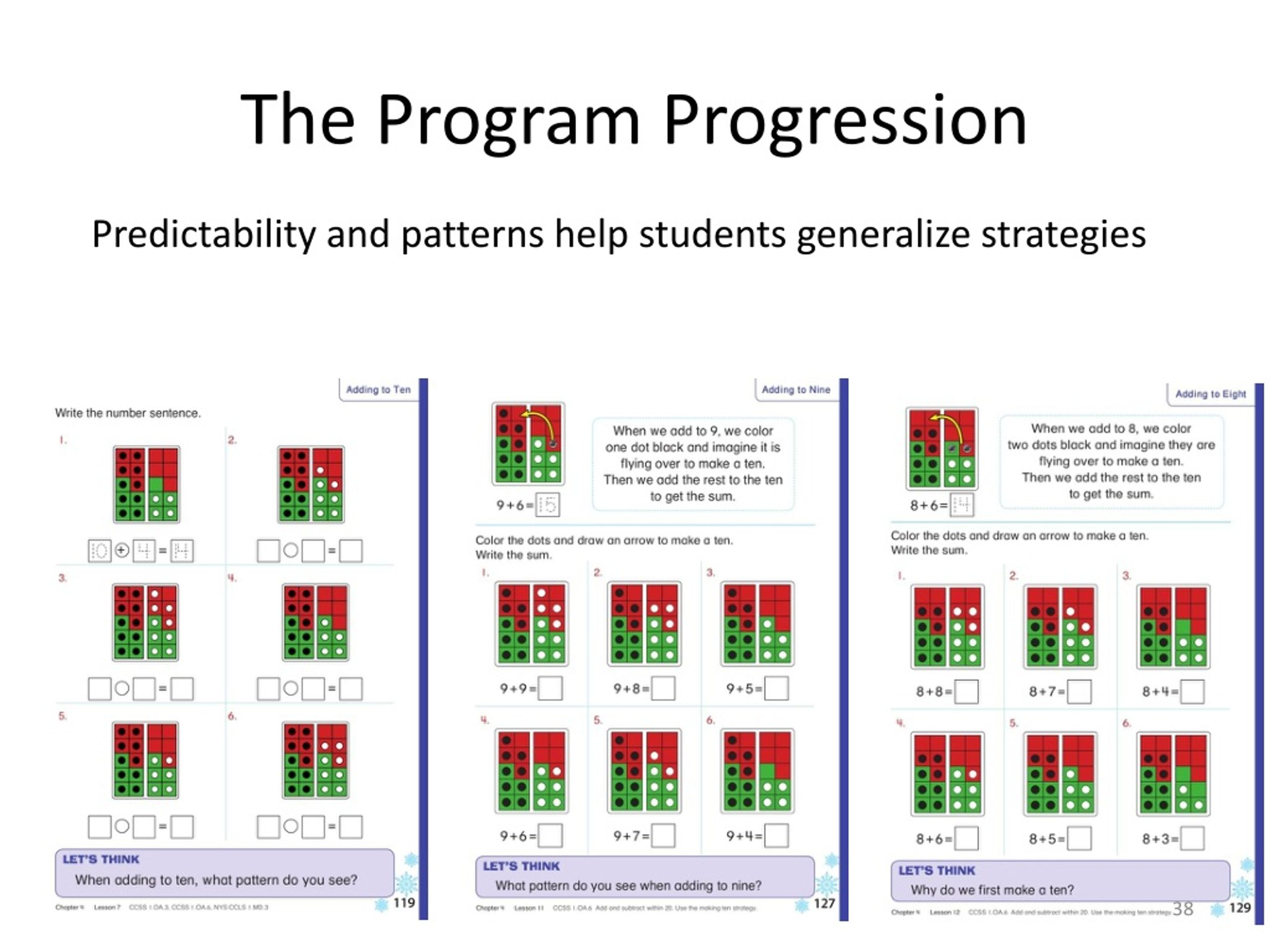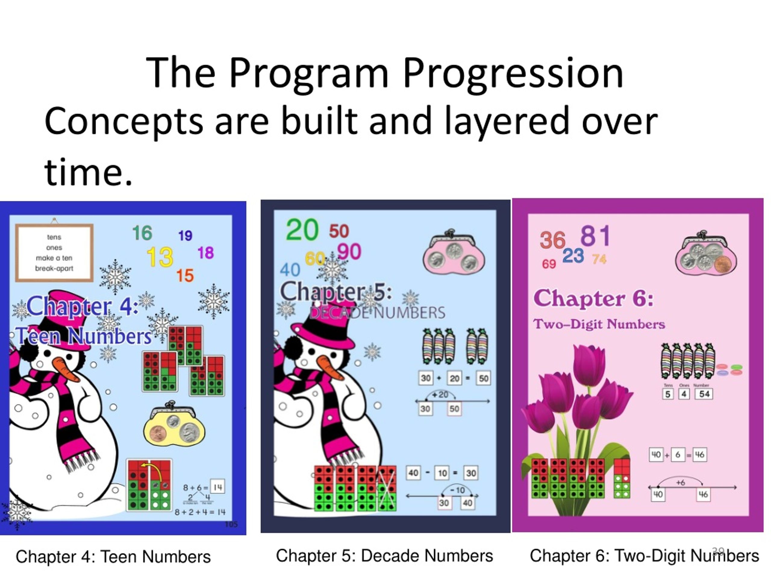 The Program Progression Concepts are built and layered over time. • Chapter 5: Decade Numbers • Chapter 6: Two-Digit Numbers • Chapter 4: Teen Numbers