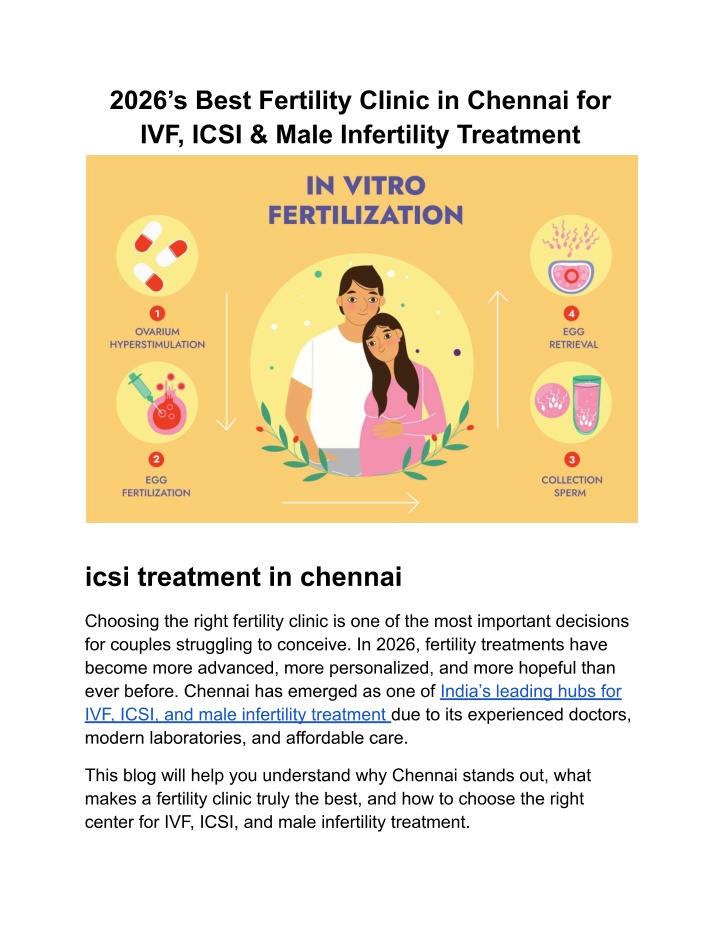 Discover advanced ICSI treatment in Chennai for fertility challenges. Explore specialized infertility care and experienced medical professionals for your journey to parenthood