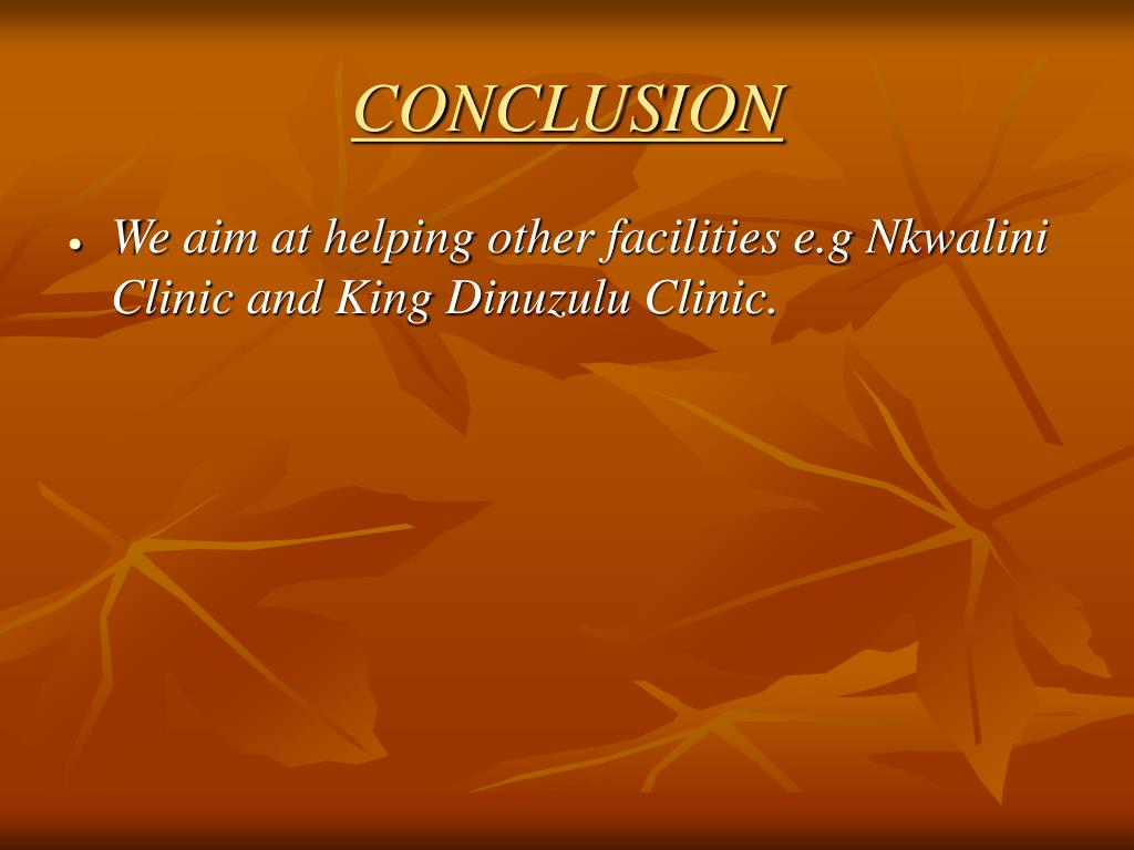 CONCLUSION • We aim at helping other facilities e.g Nkwalini Clinic and King Dinuzulu Clinic.