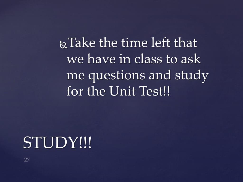 Take the time left that we have in class to ask me questions and study for the Unit Test!! STUDY!!!