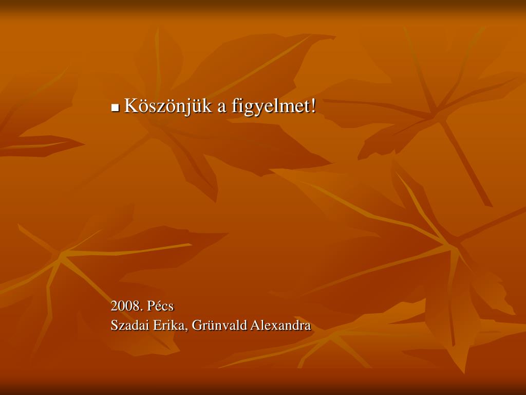 Köszönjük a figyelmet! 2008. Pécs Szadai Erika, Grünvald Alexandra