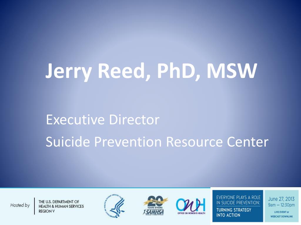 Jerry Reed, PhD, MSW Executive Director Suicide Prevention Resource Center