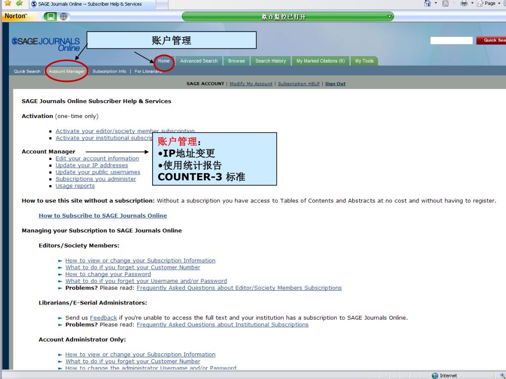 账户管理 • 账户管理: • IP地址变更 • 使用统计报告COUNTER-3 标准