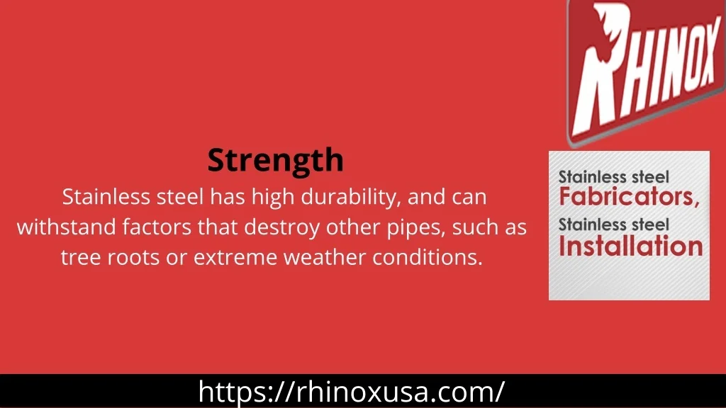 Strength Stainless steel has high durability, and can withstand factors that destroy other pipes, such as tree roots or extreme weather conditions. https://rhinoxusa.com/