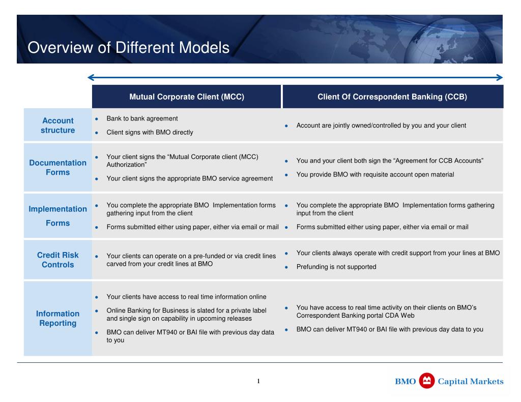 Overview of CCB and MCC Accounts. Last Revised March 2012. Overview of Different Models. 1. CBDS and MECH Accounts. CBDS and MECH Accounts. CBDS and MECH Accounts. Disclaimer.