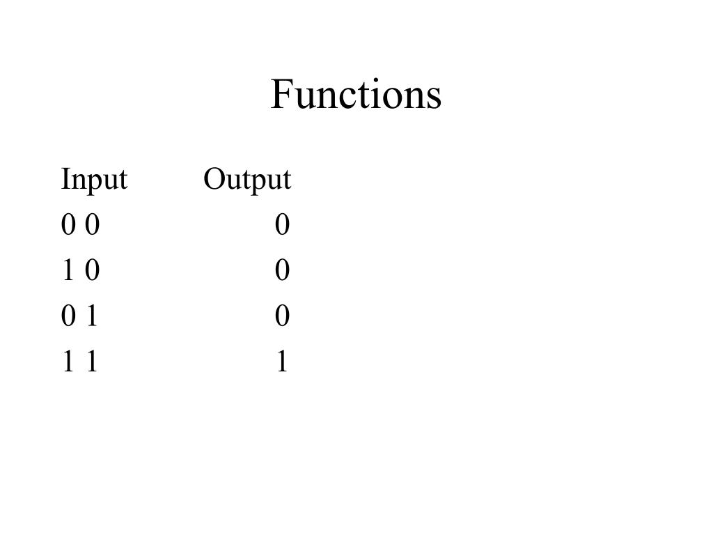 Functions Input Output 0 0 0 1 0 0 0 1 0 1 1 1