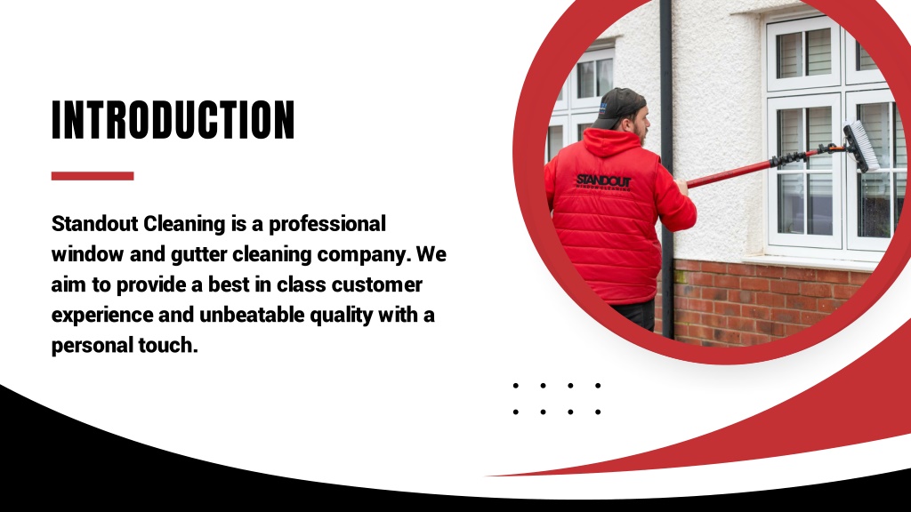 INTRODUCTION • Standout Cleaning is a professional window and gutter cleaning company. We aim to provide a best in class customer experience and unbeatable quality with a personal touch.