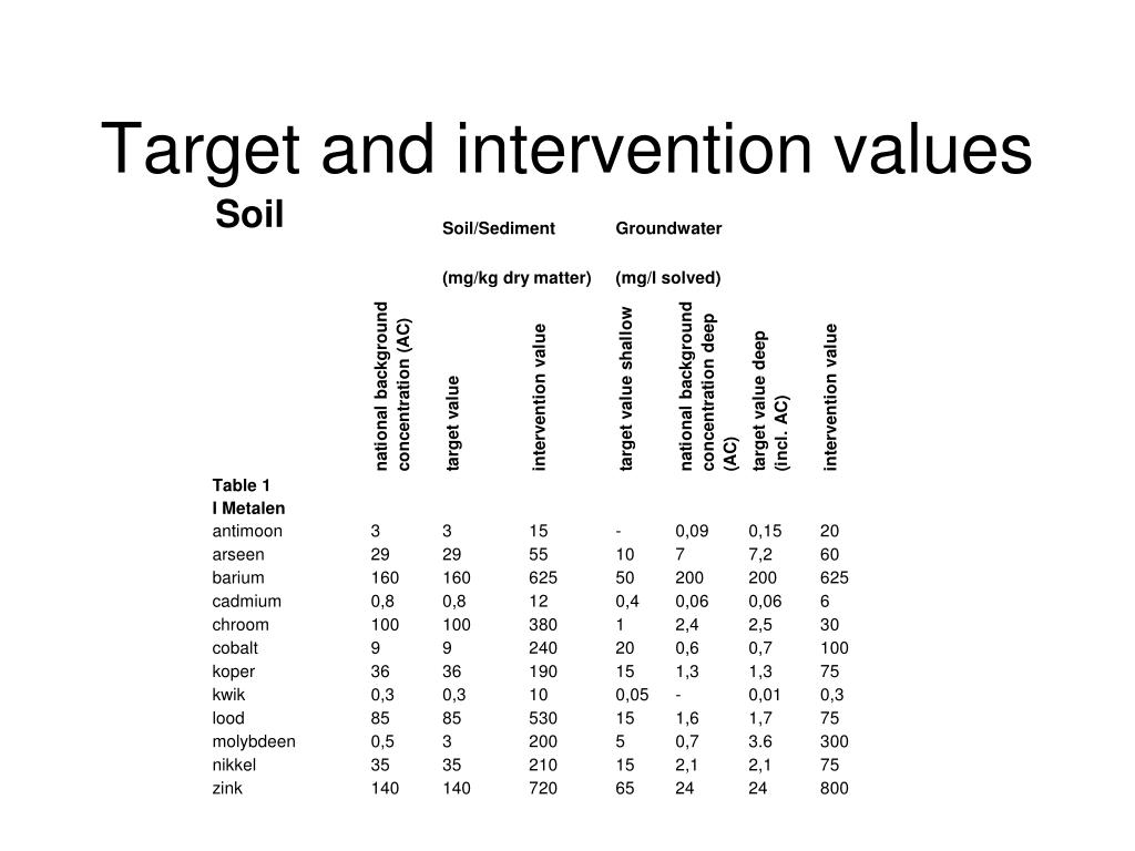 18A general environmental target value (streefwaarde) in the Netherlands is