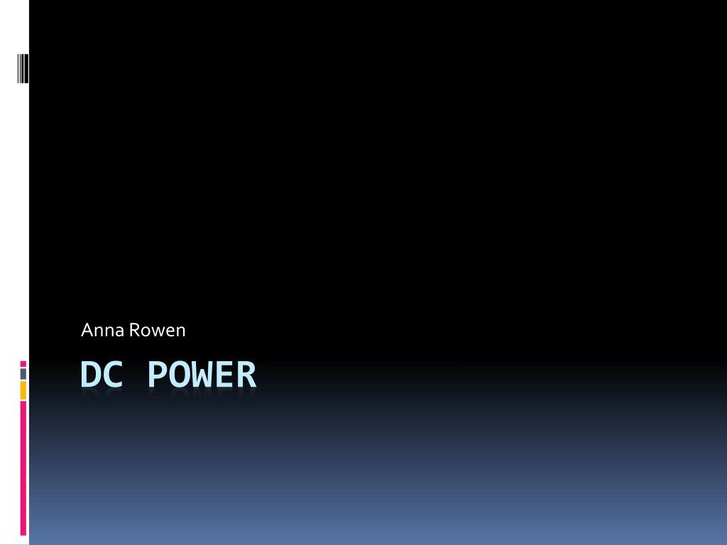 Anna Rowen. DC Power. What is DC?. DC or direct current is the unidirectional flow of electric charge It is used to charge batteries, and in nearly all electronic systems as the power supply Also used for some railway propulsion, especially in urban areas
