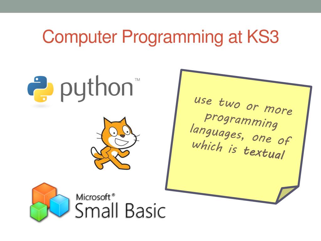 Computer Programming at KS3 use two or more programming languages, one of which is textual