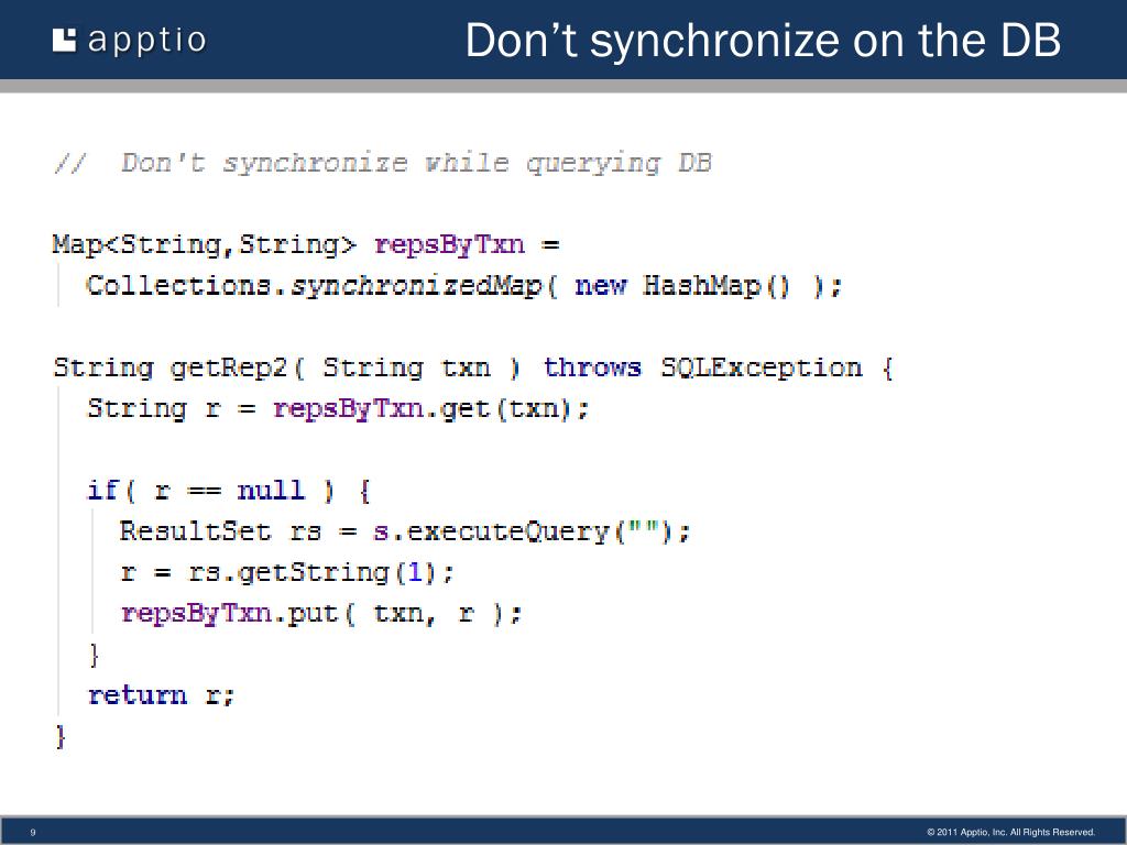 Libraries • CLHM http://code.google.com/p/concurrentlinkedhashmap/ • Guavahttp://code.google.com/p/guava-libraries/ • Colthttp://acs.lbl.gov/software/colt/ • Trove4Jhttp://trove.starlight-systems.com/ • JDK 8 Concurrency Codehttp://gee.cs.oswego.edu/dl/concurrency-interest/index.html