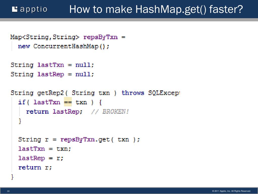 Java Performance - War Stories. Paul McLachlan Apptio. Performance Strategy. Performance tuning is a discipline Measure, Don’t (ever) guess Always attack #1 bottleneck first Is success possible?. Performance Strategy. Performance Strategies Call it less Make it more efficient