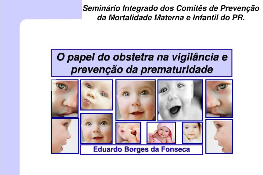 Seminário Integrado dos Comitês de Prevenção da Mortalidade Materna e Infantil do PR. Seminário Integrado dos Comitês de Prevenção da Mortalidade Materna e Infantil do PR. O papel do obstetranavigilância e prevençãodaprematuridade Eduardo Borges da Fonseca