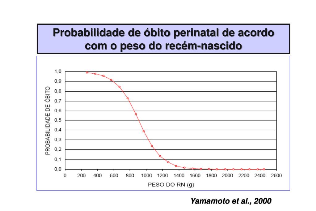 Probabilidade de óbito perinatal de acordo com o peso do recém-nascido Yamamoto et al., 2000