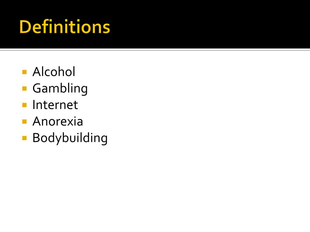 Definitions • Alcohol • Gambling • Internet • Anorexia • Bodybuilding