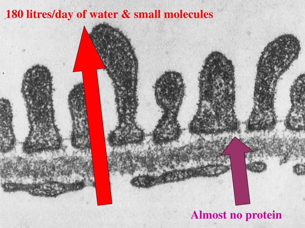 180 litres/day of water & small molecules Almost no protein